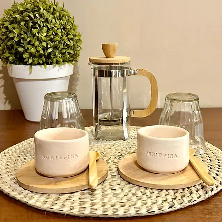 Misafirler, manzaralı havuzuna dalabilir. Agrippina Daire dairesinde dinlenme koltukları, güneş şemsiyeleri gibi plaj olanakları bulunmaktadır.